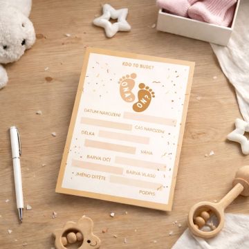 Tipovací karta - kluk nebo holka? Kdo z vašich hostů má nejlepší odhad? Chystáte oslavu k odhalení pohlaví a chcete pro své hosty něco víc než jen hádání barvy? Naše velká tipovací karta promění vaši Gender Reveal party v napínavou tipovací soutěž. Tato karta totiž nezůstává jen u otázky „kluk nebo holka“, ale prověří intuici vašich blízkých v každém detailu. Hosté mohou hádat nejen pohlaví, ale i jméno, barvu očí, přesný den a čas narození, nebo dokonce váhu a délku miminka. Je to úžasný způsob, jak zapojit rodinu i přátele do společného těšení se a vytvořit u stolu živou diskuzi. Karta je vyrobena z kvalitního papíru, na který se skvěle píše všemi druhy per i fixů. 🧩 CO VŠE MOHOU HOSTÉ TIPOVAT? ✅ Pohlaví (kluk/holka) ✅ Tip na jméno ✅ Barva očí a vlasů ✅ Den narození ✅ Přesný čas ✅ Váha a délka 178,00 Kč https://activityboard.cz/zivotni-udalosti/295-285-hra-pri-odhaleni-pohlavi-miminka-.html#/96-barva-ruzovo_modra_email">Tipovací karta - kluk nebo... Cena 4.9 42 asd rty ewr